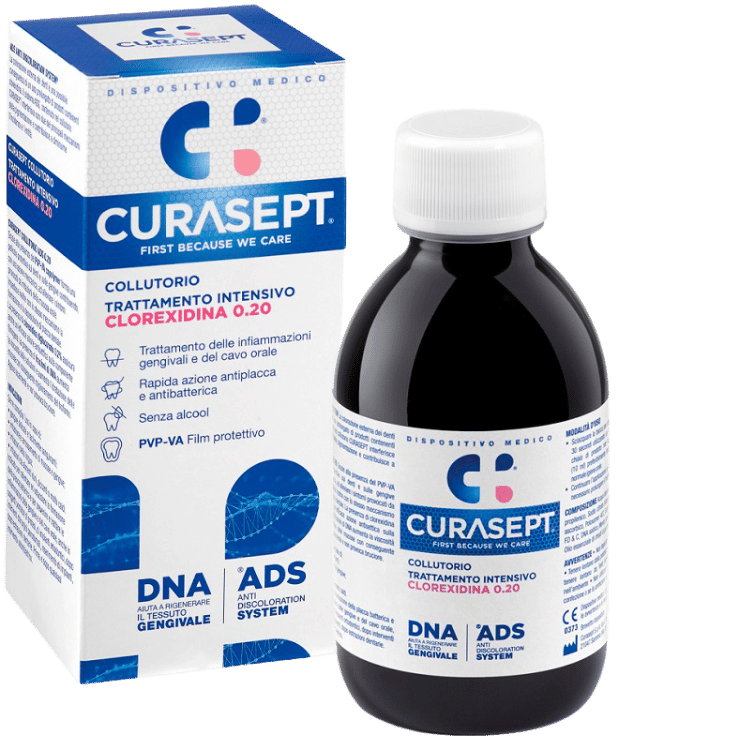 Collutorio con clorexidina per la salute delle gengive. Riduce la placca e previene le infiammazioni.