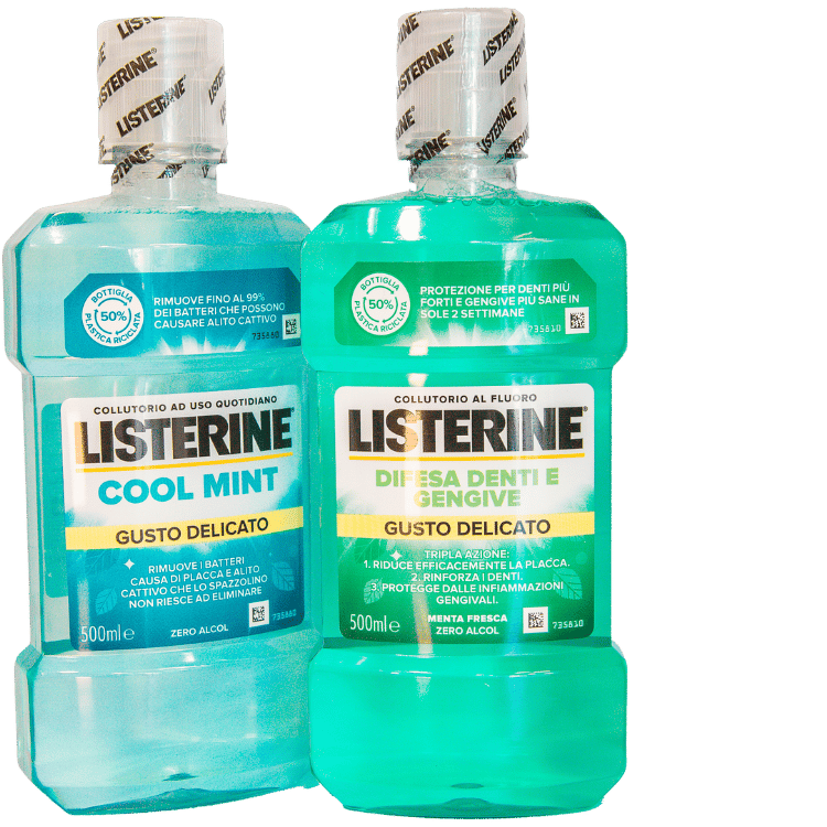 Collutorio per una pulizia profonda del cavo orale. Riduce i batteri e rinfresca l'alito. Due varianti.